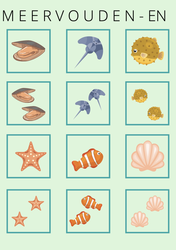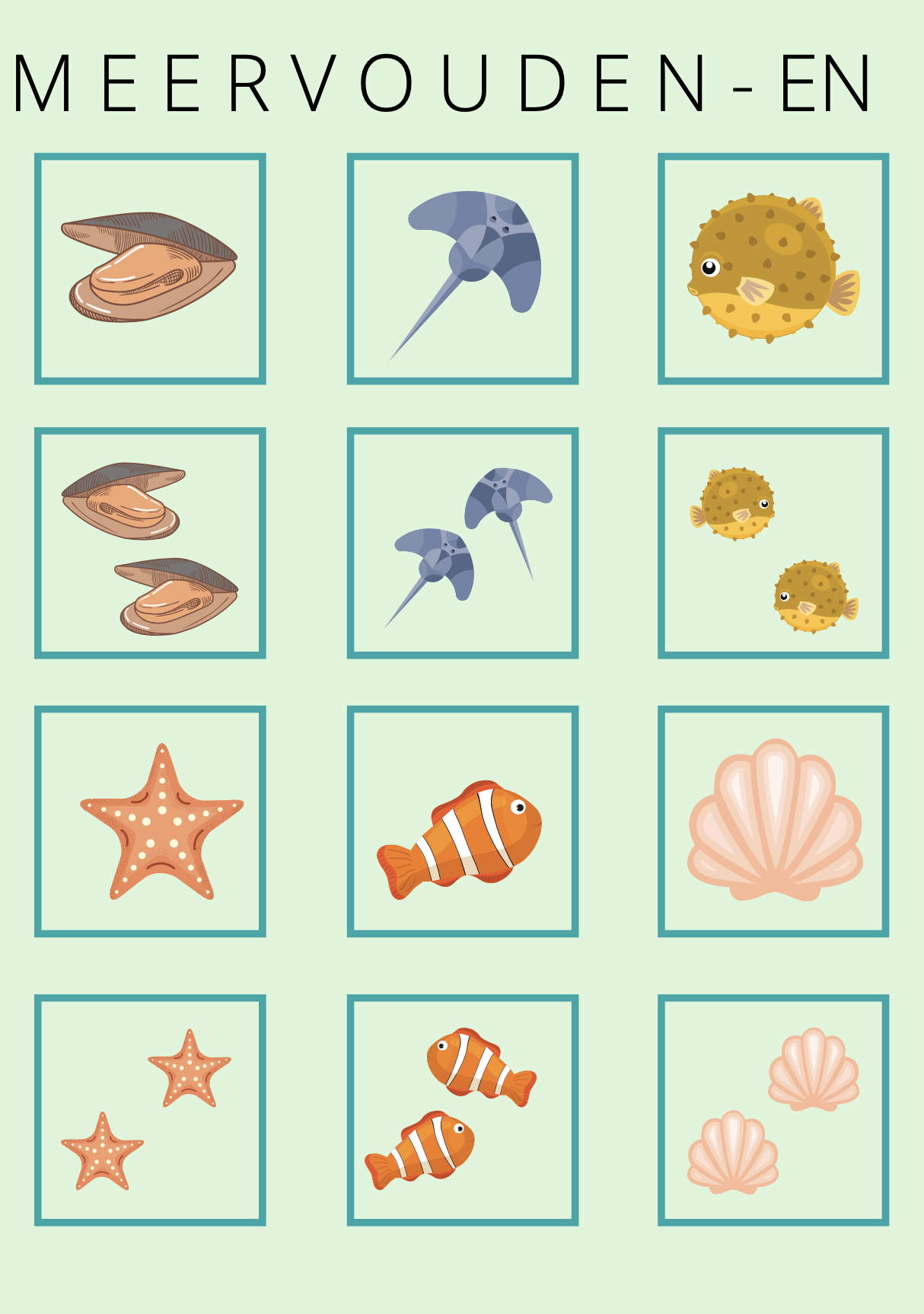 kaartjes om op meervouden en verkleinwoorden te oefenen