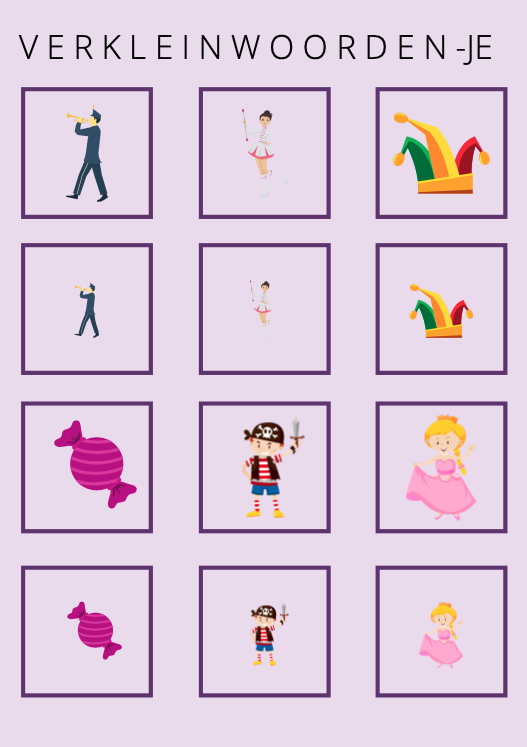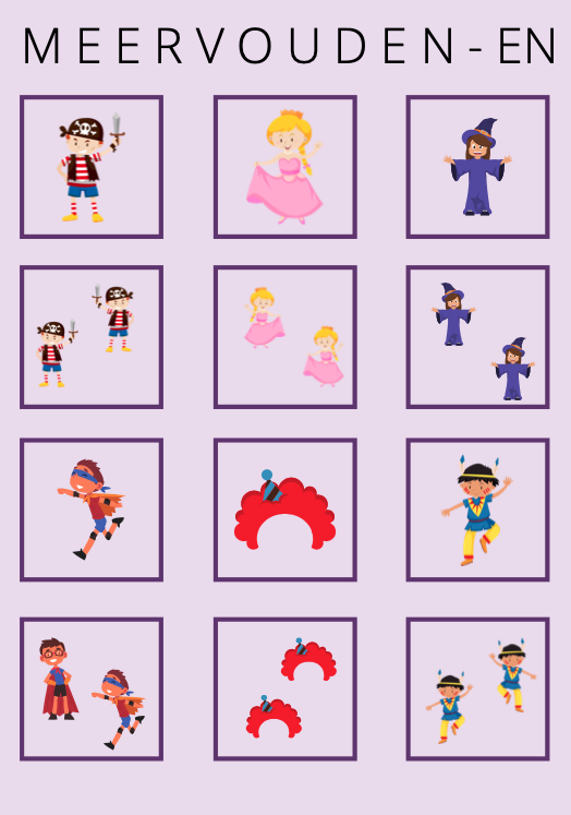 kaartjes om op meervouden en verkleinwoorden te oefenen