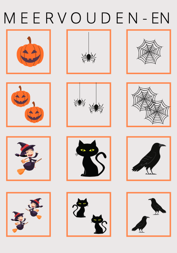 kaartjes om op meervouden en verkleinwoorden te oefenen