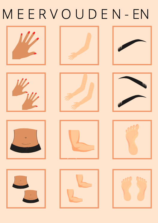 kaartjes om op meervouden en verkleinwoorden te oefenen