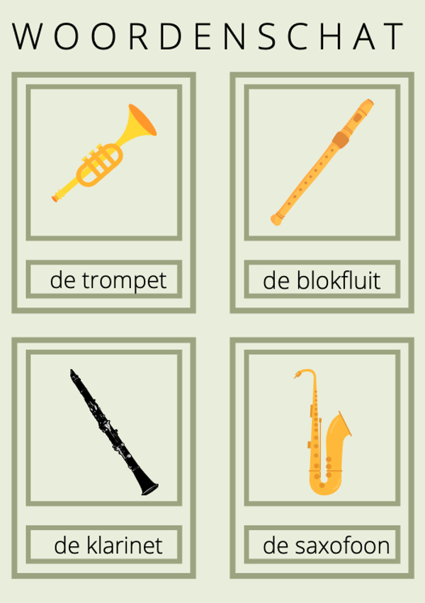pagina’s om te oefenen op woordenschat rond het thema ‘muziek’. Deze bundel bevat: