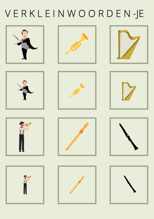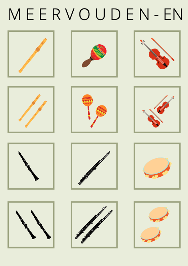 kaartjes om op meervouden en verkleinwoorden te oefenen
